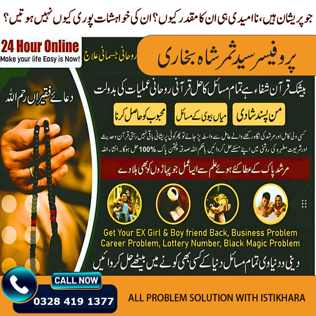 Welcome to the official website of Professor Samar Shah Bukhari, a trusted name in online Istikhara and spiritual solutions. With years of experience and deep spiritual knowledge, Professor Samar Shah Bukhari has helped thousands of people across Pakistan and around the world find peace, love, and guidance in their lives. Whether you are facing problems in love, marriage, family, or spiritual matters — you are in the right place. We provide authentic and effective solutions based on Quranic teachings and spiritual practices. All services are available online, 100% confidential, and easy to access from anywhere.